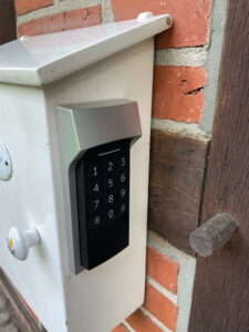 Am Briefkasten finden Sie ein Keypad. Geben Sie dort die von uns zugesendete PIN ein und bestätigen die Eingabe mit der Taste „Schloss öffnen“ (unten rechts). Sofern der Code richtig eingegeben wurde, blinkt das Keypad orange und anschließend grün und sie hören den Schließmechanismus der Haustür.
